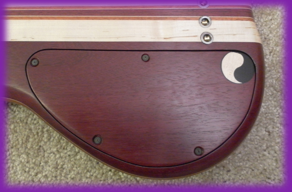 Electronics cover is matching purpleheart with a Yin/Yang symbol in one corner.