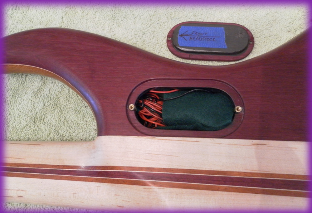 Neck has 7-laminates consisting of maple, brazilian cherry, maple on each side of a tapered purpleheart center laminate.