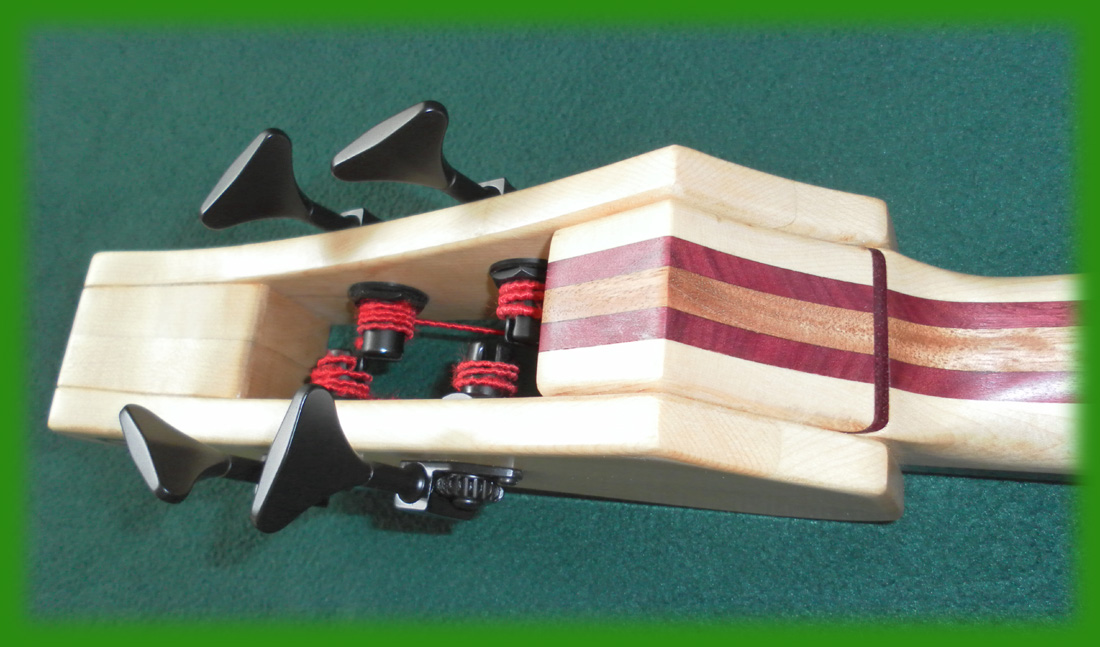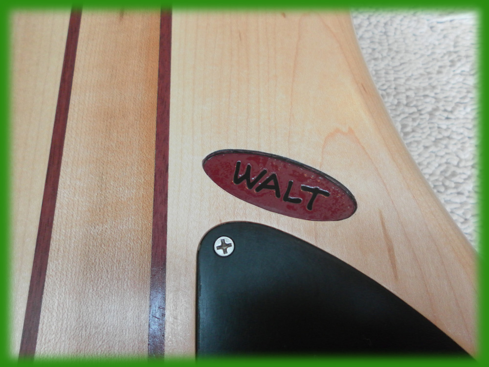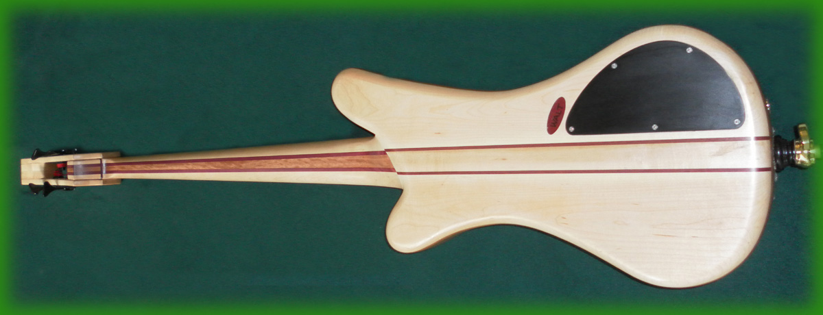 Neck is a five piece lamination of hard maple, purpleheart and lyptus.