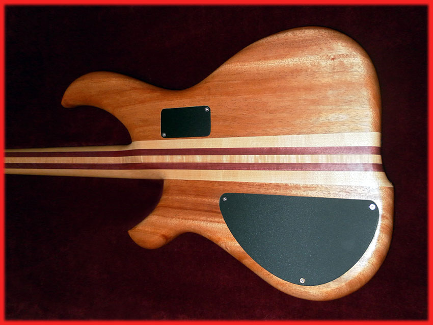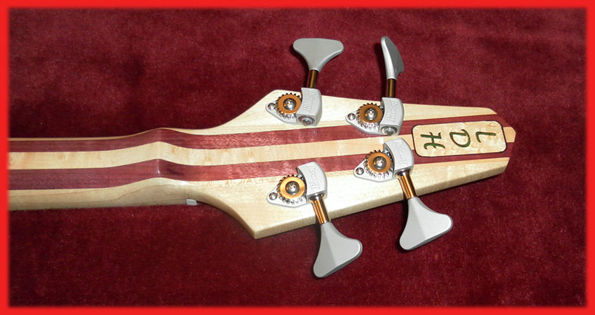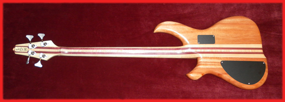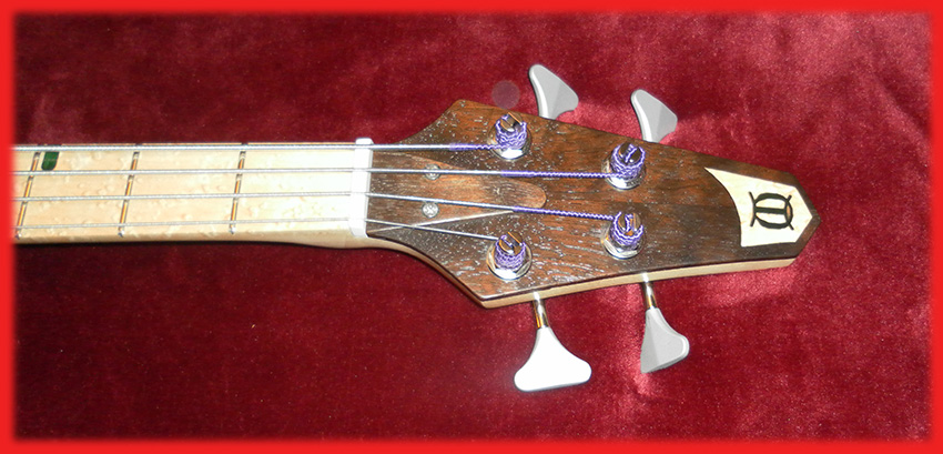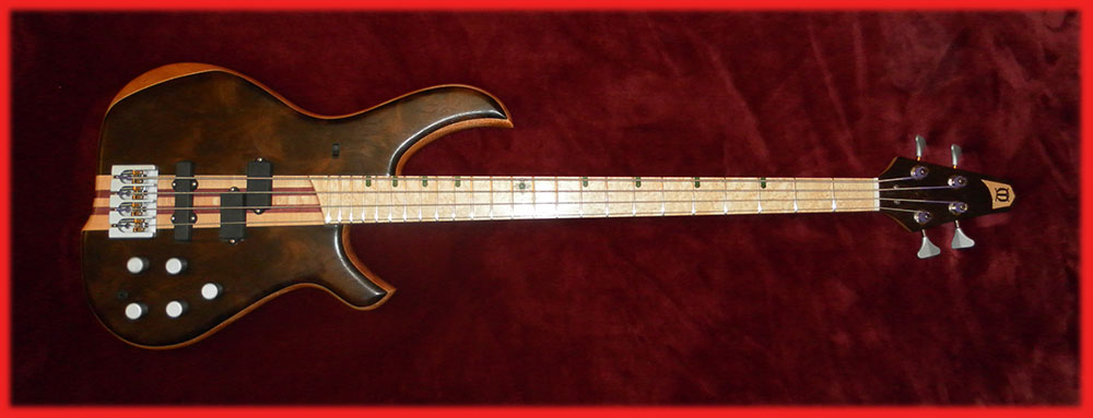 I met Luke through a good friend of mine whom I met when I first moved to Colorado. Luke's bass turned out to be quite a uniqe bass in itself. To start with the top laminates, body and headstock are made of highly figured Peruvian Walnut. It has a lot of swirly grain throughout the entire piece.